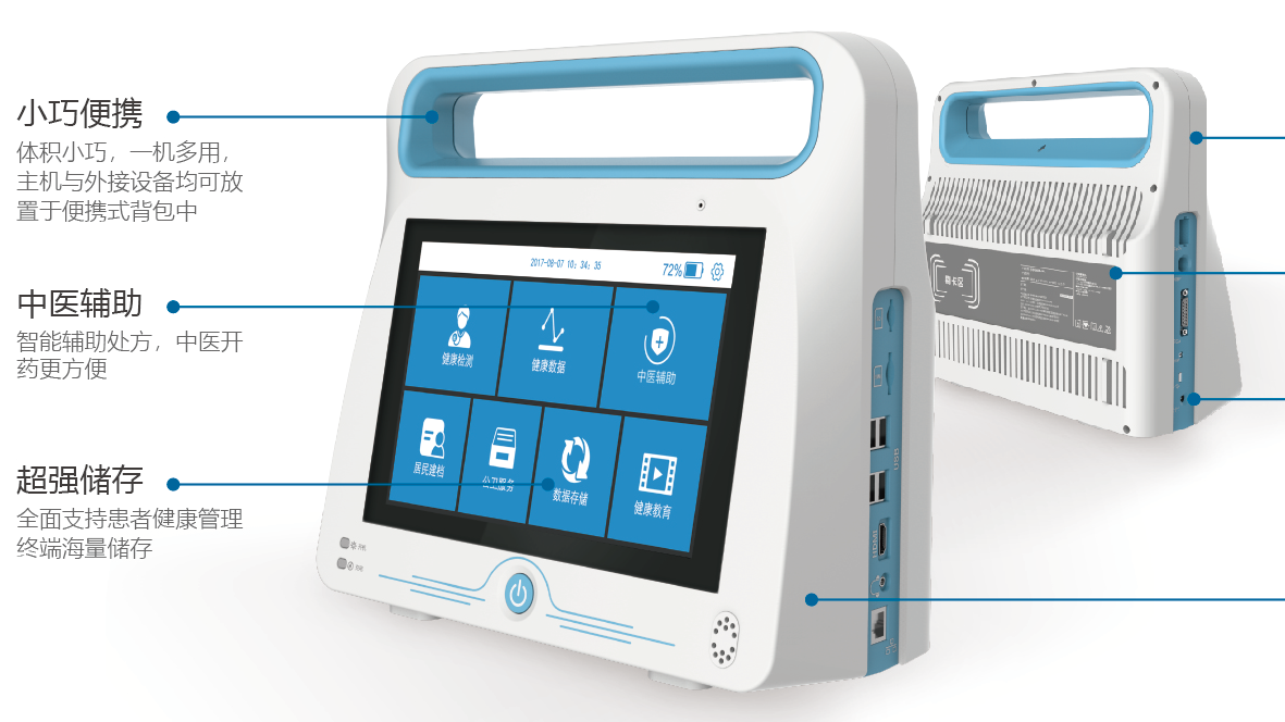 支持智能監(jiān)測設(shè)備接入,進(jìn)行數(shù)據(jù)的長期追蹤、分析與評估。數(shù)據(jù)按及地方標(biāo)準(zhǔn)建立,內(nèi)置中醫(yī)體質(zhì)辨識(shí),醫(yī)生可現(xiàn)場分析中醫(yī)體質(zhì)。